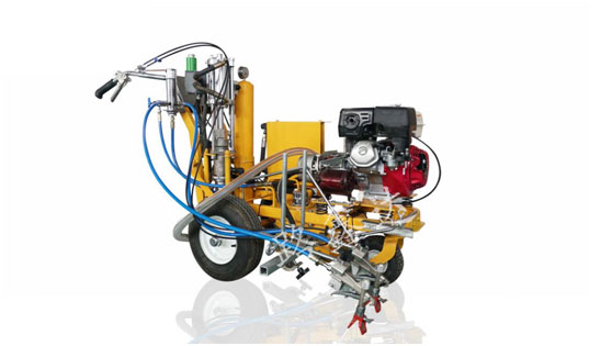 手推車載兩用冷噴劃線機為高壓力等流量型無氣噴涂機, 該機利用汽油機驅動單柱塞泵,使涂料在機內形成高壓進行噴涂,所以劃線厚薄均勻角齊。具有勞動強度低,施工快捷方便等特點。